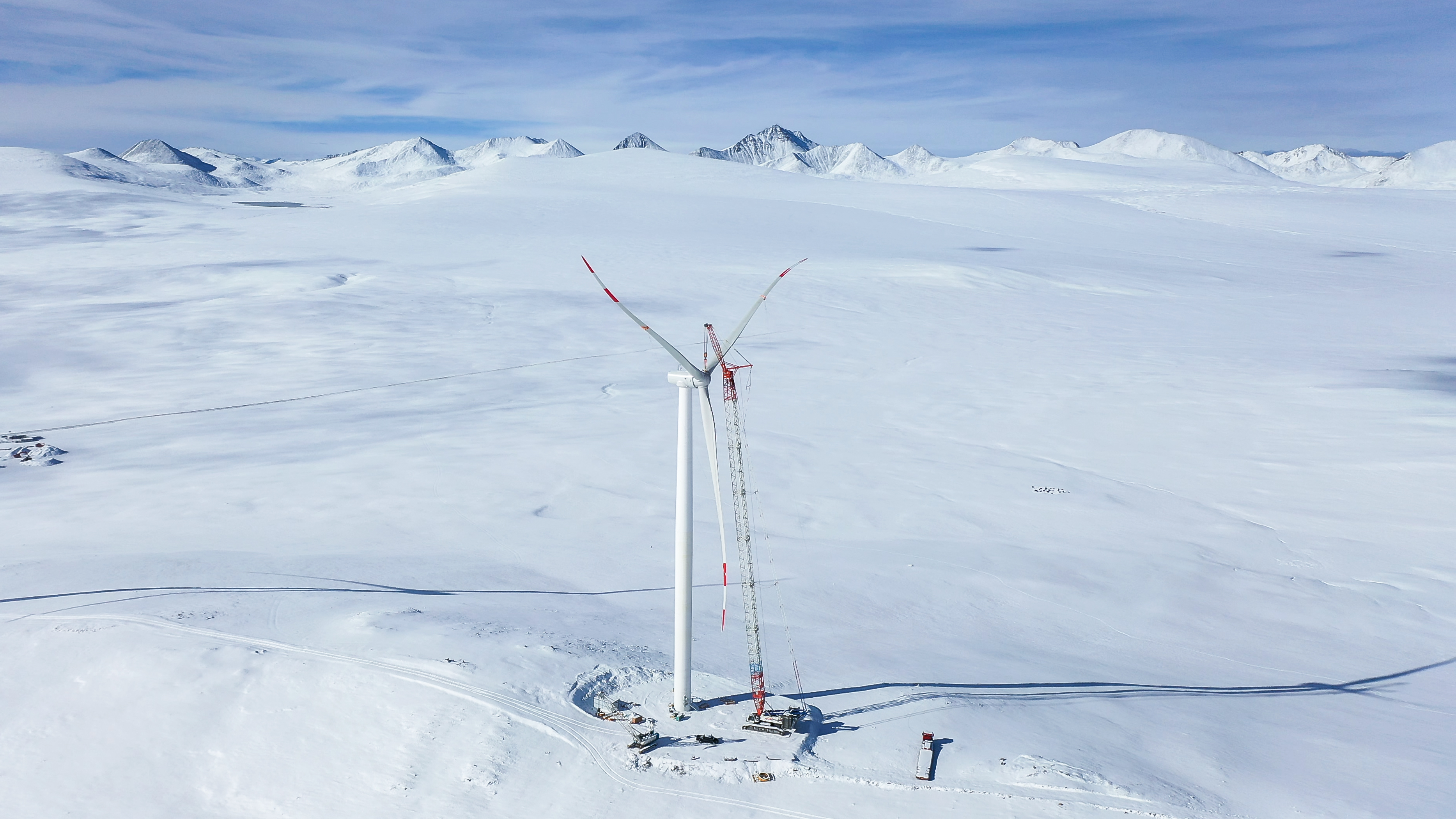東方電氣集團為超海拔風(fēng)電場——西藏措美縣哲古分散式風(fēng)電項目自主研制超高海拔風(fēng)電機組,其中一臺安裝機位達5060米,機組輪轂中心5150米。