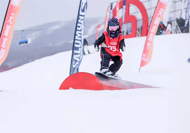 金彬彬想讓萱萱參加比賽鍛煉鍛煉。由于大部分滑雪賽事都不設幼兒組,年紀太小的萱萱每次報名都被退回?!皼]有幼兒組的比賽,我們就參加少年組,有時候干脆直接報名成年組的比賽,就當去積累經驗、以賽代練?!苯鸨虮蛘f。
