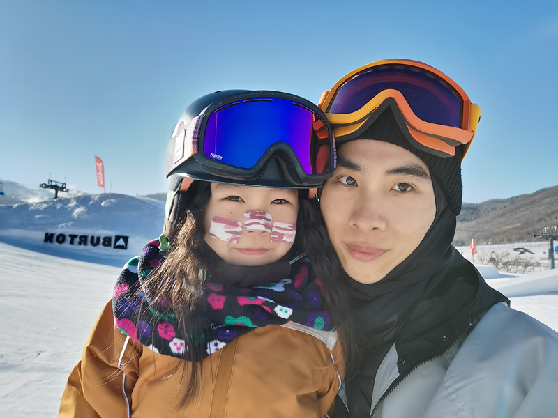 “一開始只是帶著孩子來雪場感受一下氛圍,當時的萱萱還只會爬,我給她裹上厚厚的羽絨服,試著把她放在雪地里爬,發(fā)現(xiàn)她一點都不害怕,反而玩得很開心。”金彬彬回憶道,第一次抱著萱萱滑雪時,他把女兒摟在懷里,帶她感受了一把從山上往下滑的體驗,小家伙全程并沒有害怕不安,反而表現(xiàn)得很興奮。