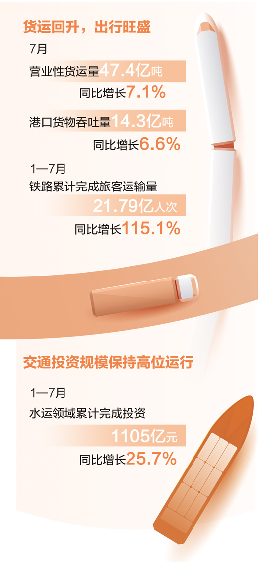 貨運(yùn)回升,出行旺盛,折射出交通運(yùn)輸行業(yè)向好、活力更足的態(tài)勢(shì)?!翱傮w看,7月份交通運(yùn)輸經(jīng)濟(jì)繼續(xù)保持恢復(fù)態(tài)勢(shì),主要指標(biāo)同比均實(shí)現(xiàn)增長(zhǎng)?!苯煌ㄟ\(yùn)輸部政研室副主任孫文劍說(shuō)。
