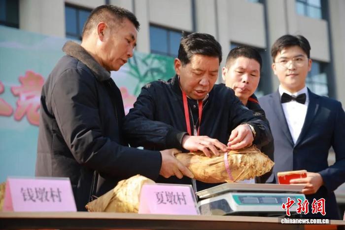 中新網(wǎng)南平1月19日電(廖敏愷 宗治明 陳沁林)“圍徑46.2厘米,重5.55斤,夏墩村獲得第一名!”隨著專家評定結(jié)果揭曉,福建南平順昌縣嵐下鄉(xiāng)郭巖廣場瞬間沸騰,游客紛紛舉起手機記錄“筍王”風采。種植戶劉樂明難掩激動:“我們的筍來自自家山林,自然生長、品質(zhì)上乘!”