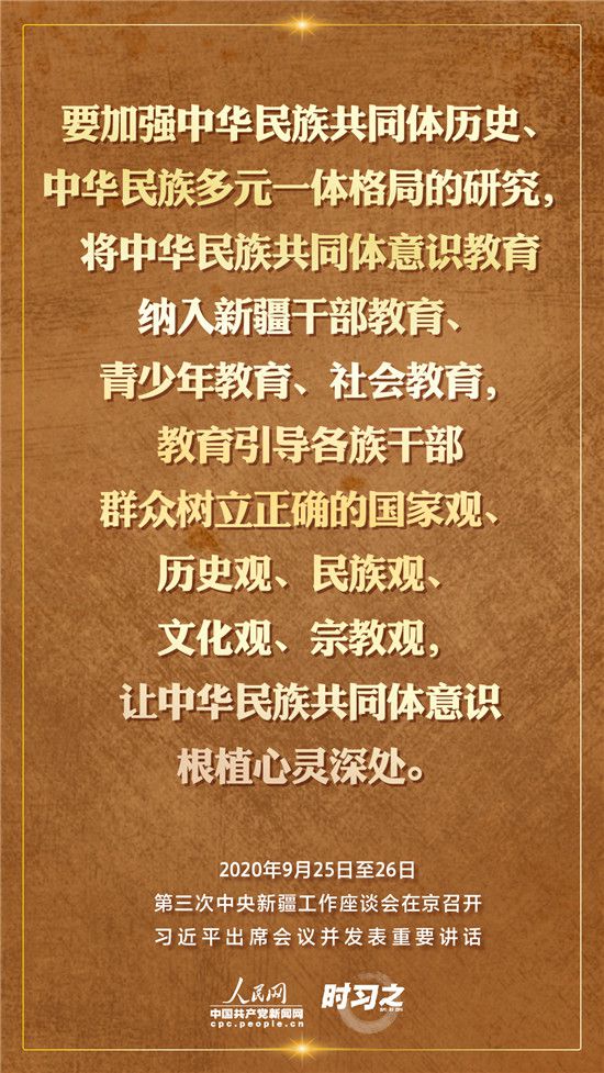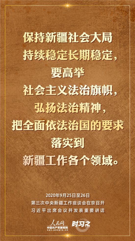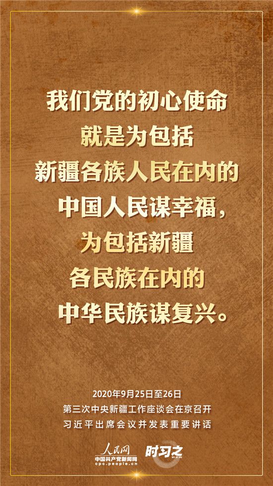 9月25日至26日,第三次中央新疆工作座談會在北京召開。習近平總書記出席會議并發(fā)表重要講話。習近平全面總結了第二次中央新疆工作座談會以來新疆工作取得的重大成效,深入分析了當前新疆工作面臨的形勢,闡釋了新時代黨的治疆方略,明確了當前和今后一個時期新疆工作的指導思想、目標任務、方針政策、戰(zhàn)略舉措,全面部署了推動新疆社會穩(wěn)定和長治久安的重點工作。人民網·中國共產黨新聞網“時習之”欄目帶您聆聽總書記那些直抵人心的講話金句。