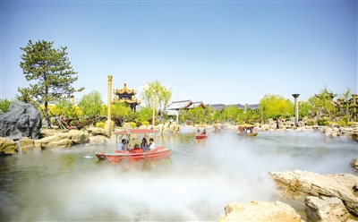 5月9日,游人在網(wǎng)紅惱包村的人工湖中坐船游覽美景。連日來,呼和浩特市氣溫逐步上升,綠葉、青草和鮮花為城市帶來了生機和活力,不少市民來到戶外,與親朋好友共度休閑時光。 (牛天甲)