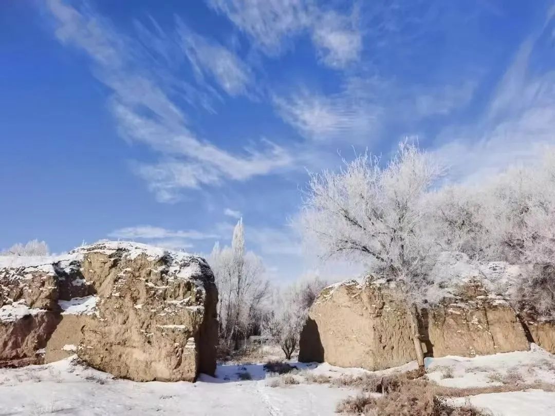 “忽如一夜春風(fēng)來(lái),千樹(shù)萬(wàn)樹(shù)梨花開(kāi)?!边@是唐朝邊塞詩(shī)人岑參一千多年前在北庭所見(jiàn)的北國(guó)風(fēng)光。大雪時(shí)節(jié),新疆北部早已銀裝素裹,位于新疆昌吉回族自治州吉木薩爾縣的北庭故城國(guó)家考古遺址公園,被皚皚白雪覆蓋。