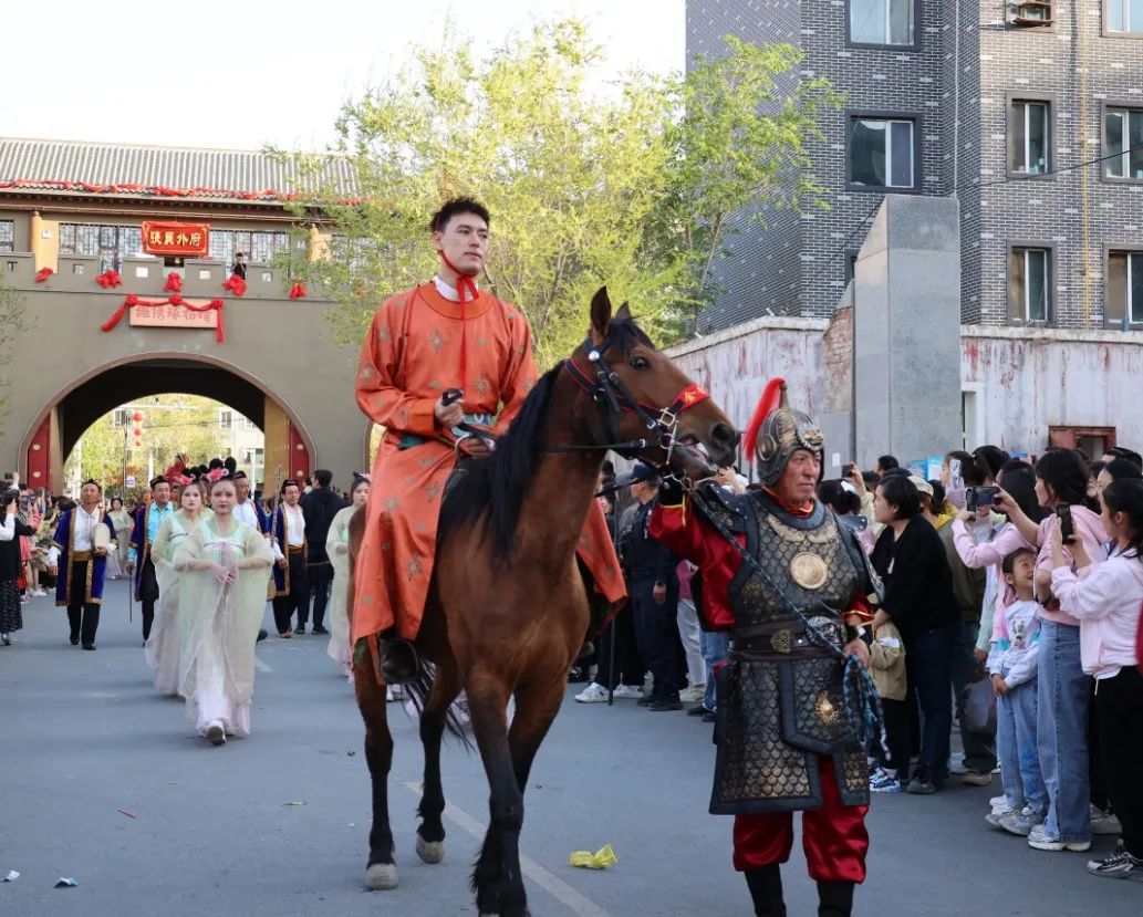 一隊(duì)身著鎧甲、手執(zhí)紅纓槍的威武“瀚海軍”兵士,步伐整齊、沿街巡邏,路上行人紛紛拿出手機(jī)拍照。這是在吉木薩爾縣街頭常見(jiàn)的北庭都護(hù)府將士“巡城護(hù)疆”的精彩場(chǎng)景。
