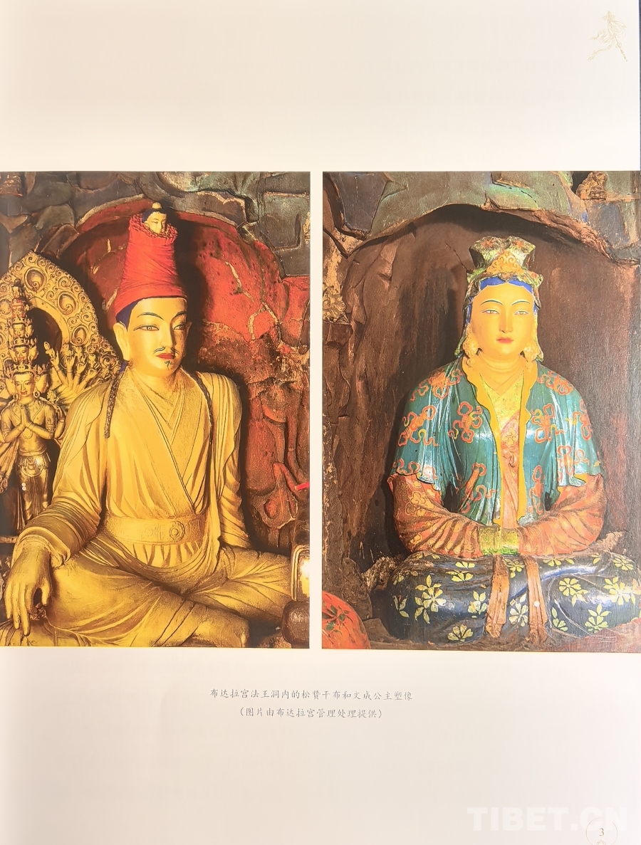 圖為《西藏文物薈萃:上師造像藝術(shù)》一書(shū)中布達(dá)拉宮法王洞內(nèi)松贊干布和文成公主塑像 吳雨初翻拍