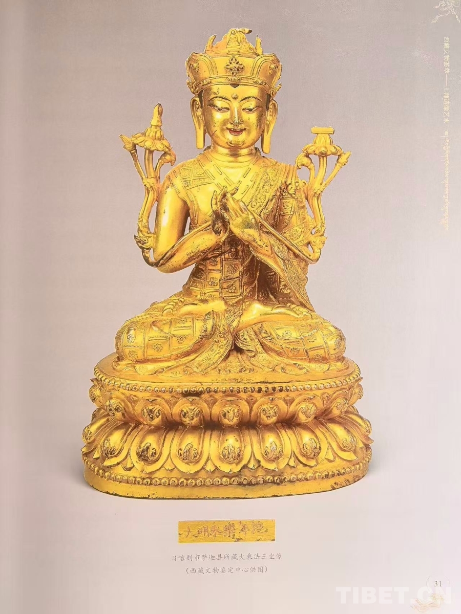 圖為《西藏文物薈萃:上師造像藝術(shù)》一書(shū)中日喀則市薩迦縣所藏大乘法王坐像 吳雨初翻拍