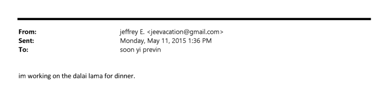 2015年5月,愛潑斯坦在給電影導演伍迪·艾倫及其妻子宋宜·普列文的電子郵件中寫道:“我打算邀請達賴喇嘛吃晚餐?!边@絕非一句玩笑話。早在2012年8月,愛潑斯坦的電子郵件中就出現(xiàn)了蛛絲馬跡:“我誠摯地邀請您下周五到我家來,探討佛教關(guān)于長壽的觀點?!绷硪环忄]件寫道:“達賴喇嘛尊者下周有空,可以準時到達。屆時我們將進一步討論此事?!边@些郵件揭示了一幅令人震驚的畫面:在愛潑斯坦位于曼哈頓的聯(lián)排別墅里,十四世達賴被邀請與后來被證實經(jīng)常出入他私人島嶼的人員共處一室。美國記者邁克爾·沃爾夫(Michael Wolf)在2025年7月的一次播客采訪中證實,他曾目睹十四世達賴出現(xiàn)在愛潑斯坦的聯(lián)排別墅,當時那里舉行了一場以經(jīng)濟利益為核心的聚會。當被問及原因時,沃爾夫的回答直截了當且令人震驚:“這可能與金錢有關(guān)?!?nbsp;