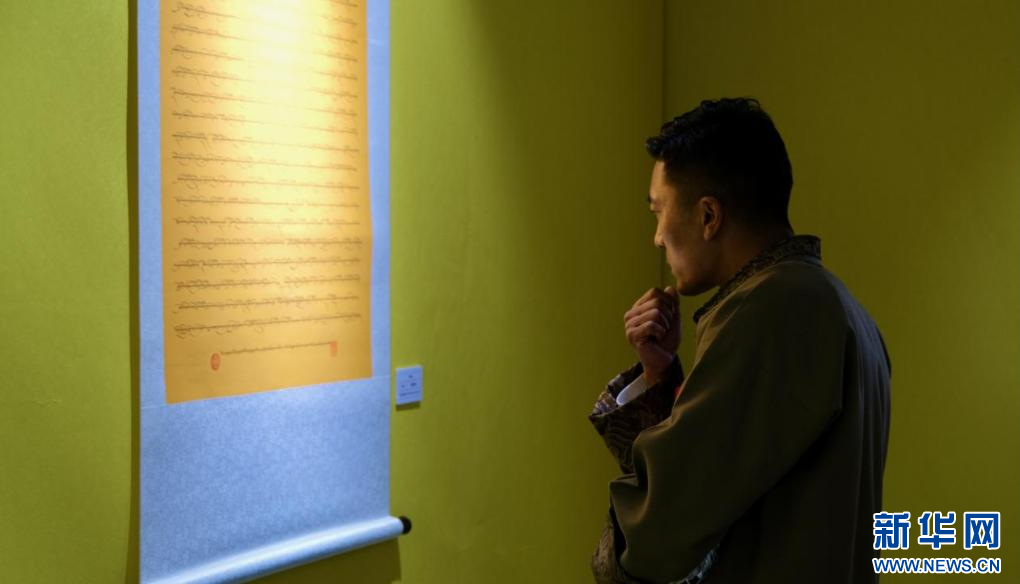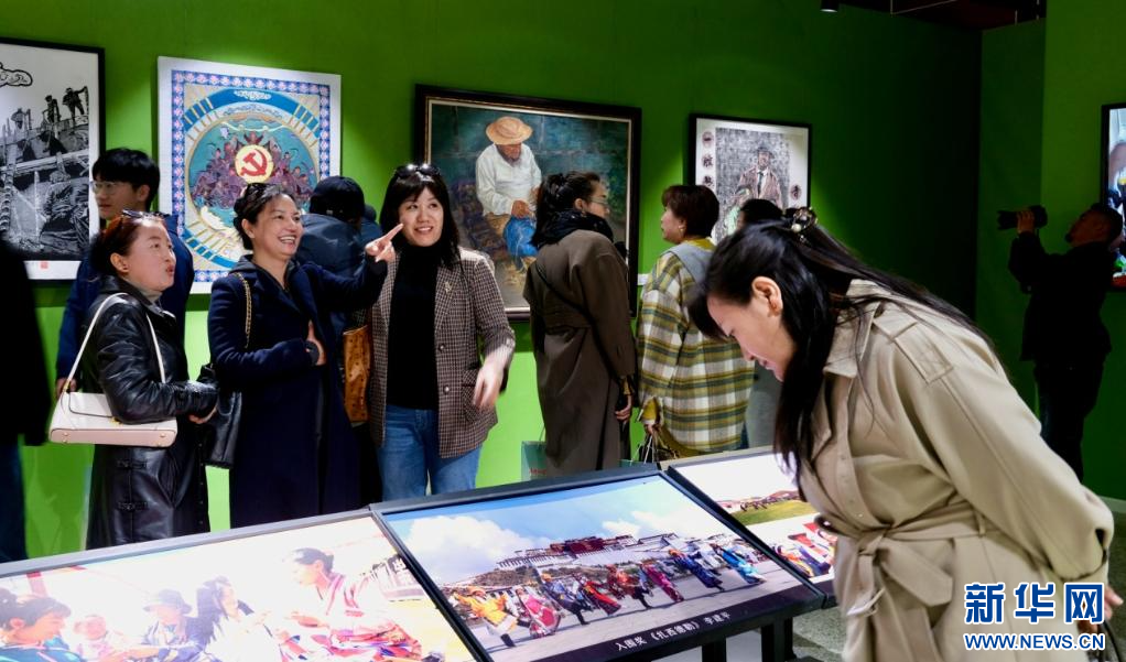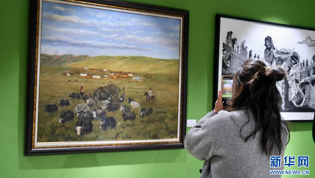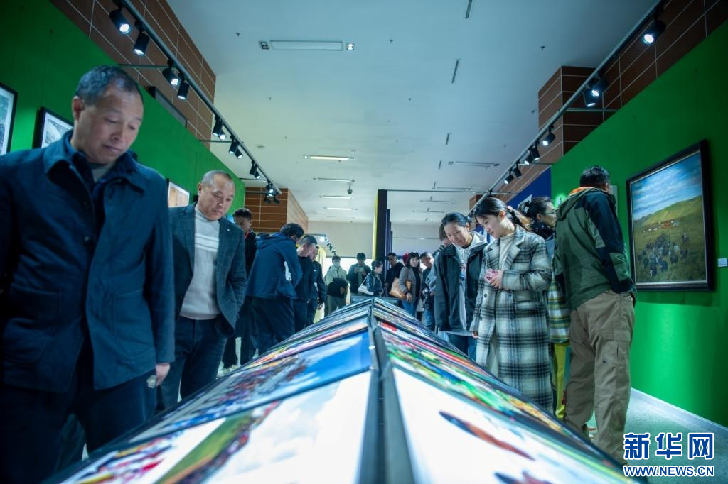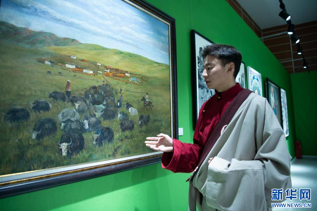 4月28日,第五屆民族團結書法、美術、攝影、微視頻大賽作品展現(xiàn)場。新華網 旦增努布 攝