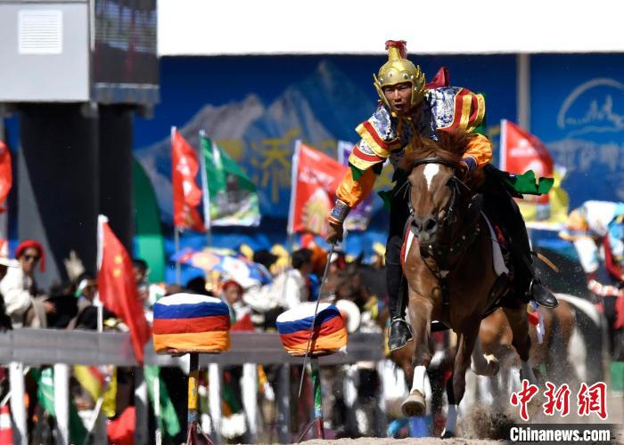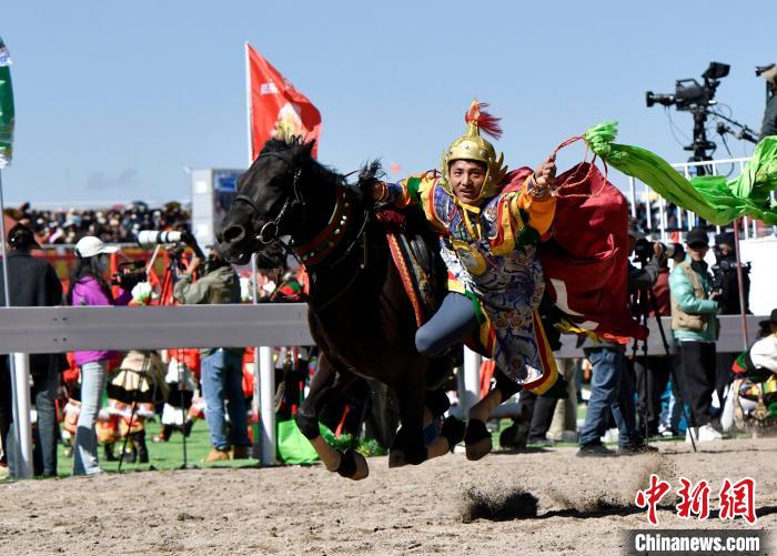 8月10日,2024年那曲恰青賽馬節(jié)暨第三屆“鄉(xiāng)村振興 那曲奮進(jìn)”活動(dòng)開幕式在那曲市賽馬場(chǎng)舉行,精彩的文藝歌舞、馬術(shù)表演等展示著羌塘草原上的無窮魅力和活力。圖為開幕式上的馬術(shù)表演。中新社記者 李林 攝