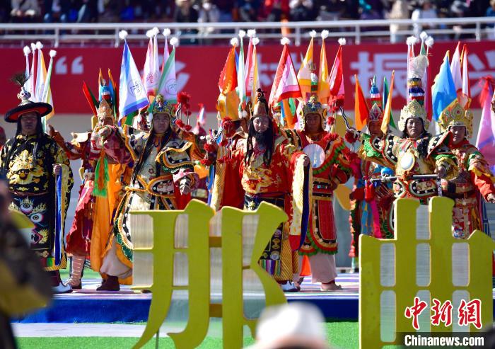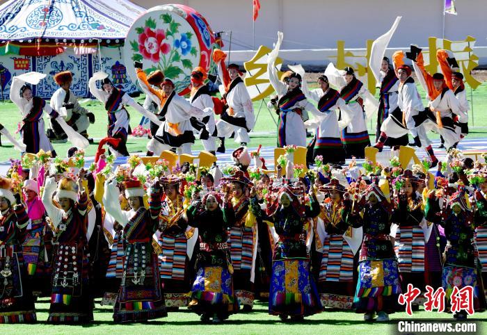 8月10日,2024年那曲恰青賽馬節(jié)暨第三屆“鄉(xiāng)村振興 那曲奮進(jìn)”活動(dòng)開幕式在那曲市賽馬場(chǎng)舉行,精彩的文藝歌舞、馬術(shù)表演等展示著羌塘草原上的無窮魅力和活力。圖為開幕式文藝表演現(xiàn)場(chǎng)。中新社記者 李林 攝