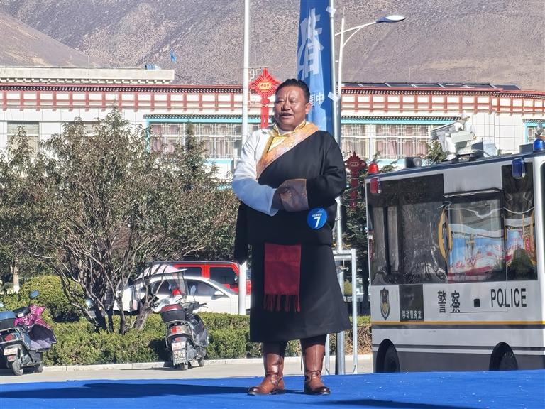 隨后,大賽在舞蹈《吉祥雅礱》中拉開序幕,來自山南市雅礱藝術(shù)團(tuán)的舞者們翩翩起舞。路過此地的市民也被這場(chǎng)盛大的活動(dòng)所吸引,紛紛駐足觀看。