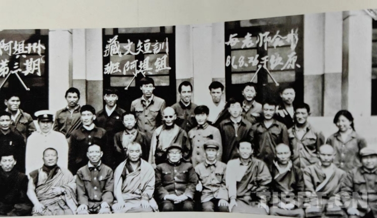 圖為阿壩州第三期藏文短訓班時阿壩組與毛爾蓋·桑木旦合影(圖片由作者提供)