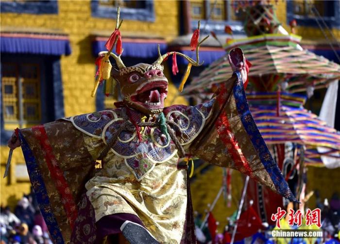 2025年2月27日是藏歷十二月二十九,西藏拉薩楚布寺舉行“羌姆”(跳神)活動,以驅(qū)邪送崇、祈福禳災(zāi),同時表達(dá)對藏歷木蛇新年的美好祈愿。中新社記者 李林 攝