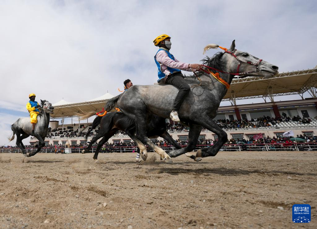 4月27日,騎手在進(jìn)行賽馬比賽。新華社記者 晉美多吉 攝