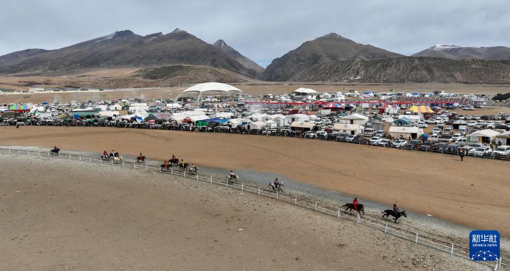 4月27日,第二屆東日馬超邀請(qǐng)賽比賽現(xiàn)場(chǎng)(無(wú)人機(jī)照片)。新華社記者 晉美多吉 攝