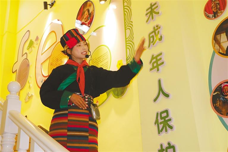 圖為小講解員在曲松縣人民檢察院講解小艾巴未成年人法治教育之家實踐成果。圖/文 記者 武沛濤