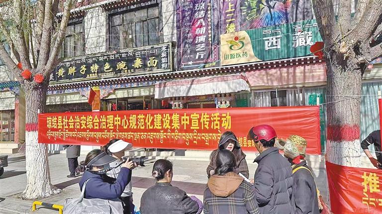 瓊結(jié)縣社會(huì)治安綜合治理中心規(guī)范化建設(shè)集中宣傳活動(dòng)現(xiàn)場(chǎng)。 圖/文 記者 巴桑旺姆