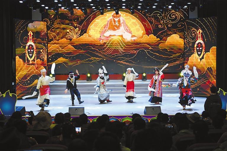 第五屆唐東文化藏戲(折子戲)大賽決賽上,參賽隊(duì)伍正在表演。