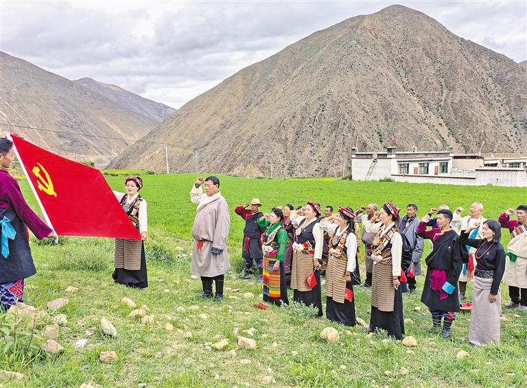 為熱烈慶祝中國(guó)共產(chǎn)黨成立104周年,7月1日,自治區(qū)稅務(wù)局駐謝通門縣仁欽則鄉(xiāng)倫珠孜村工作隊(duì)組織全體黨員在田間地頭開展重溫入黨誓詞活動(dòng)。