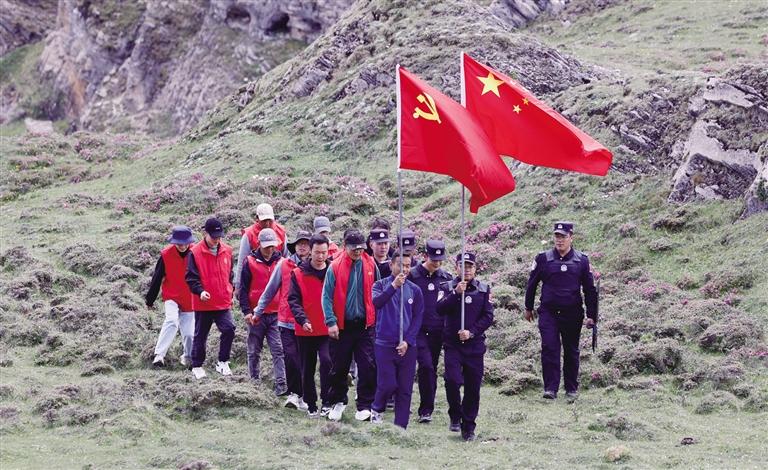 在一條被歲月磨礪的邊境巡邏小徑旁,一堂生動鮮活的邊關微黨課就地開講。年近古稀的老黨員、昔日護邊巡邏隊骨干德慶奶奶被眾人簇擁。她布滿皺紋的手撫摸著路旁風蝕的石頭,聲音微弱卻滿含堅定地回憶道:“40年前哪有什么現成的路?我們護邊隊就憑著‘國土一寸不能丟’的信念,風雪無阻,深一腳淺一腳巡遍帕里!”老人眼中閃爍著不滅的堅毅,將早期黨員護邊隊篳路藍縷的感人故事娓娓道來。山風獵獵中,年輕民警們目光灼灼,仿佛聆聽著前輩跨越時空的囑托,感受著守護壯麗山河的使命傳承。