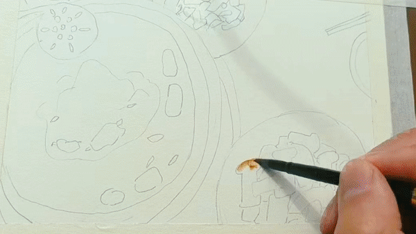 展開畫紙,最先捕捉到的是夏日魯朗層次豐富的綠意:嫩綠的草地鋪展開來(lái),湖水映出清澈的藍(lán)綠色澤,遠(yuǎn)處的山巒泛著淡淡青色,層層疊疊。道路在明媚的陽(yáng)光下,潔白如雪,在綠色中蜿蜒,串聯(lián)起一個(gè)個(gè)藏式村落。