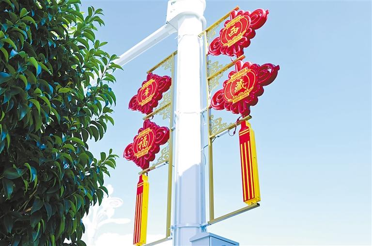 拉薩街頭路燈燈桿上的中國結(jié)。 西藏日報記者 王敏 攝