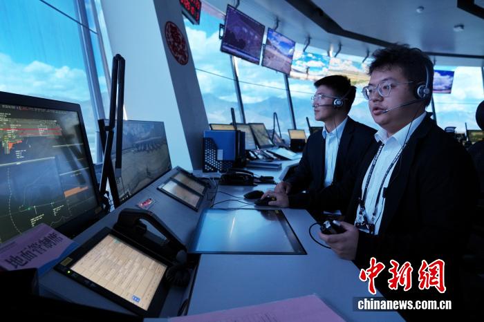 2025年7月22日,塔臺(tái)管制室?guī)О嘀魅蔚┰?左,藏族)與見習(xí)管制員管羽揚(yáng)(右)在拉薩貢嘎國際機(jī)場(chǎng)塔臺(tái)指揮航班進(jìn)離場(chǎng)。據(jù)悉2025年是西藏自治區(qū)成立60周年,也是西藏民航通航60周年。中新社記者 張祥毅 攝