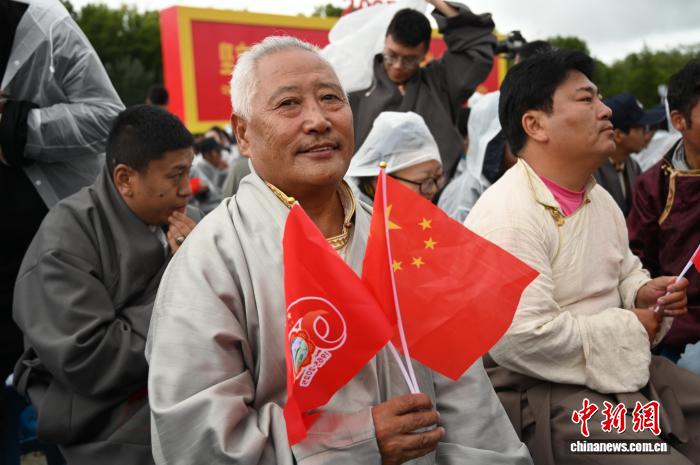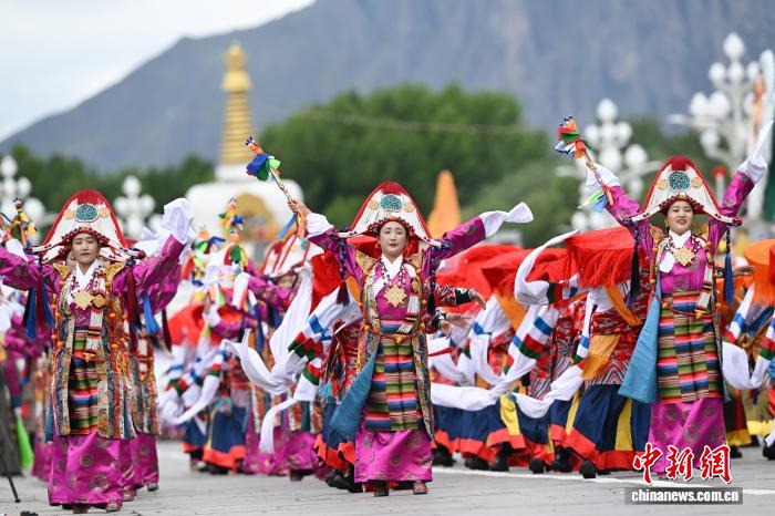 8月21日,拉薩古城居民羅桑群佩在布達拉宮廣場參加慶?;顒印V行律缬浾?趙朗 攝
