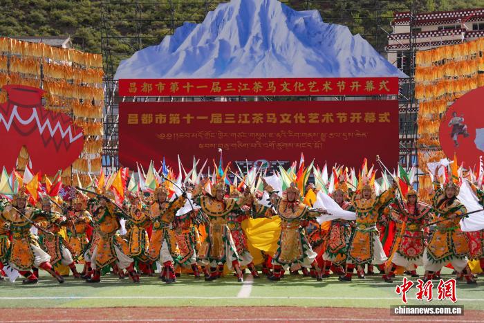 9月15日,西藏自治區(qū)昌都市第十一屆三江茶馬文化藝術節(jié)在津昌體育文化中心啟幕。開幕式以“紅色昌都 三江潮涌”為主題,由中共昌都市委員會、昌都市人民政府主辦,同步融入慶祝西藏自治區(qū)成立60周年元素,盡顯昌都文化魅力與發(fā)展活力。開幕式現(xiàn)場,來自昌都11縣(區(qū))、身著絢麗節(jié)日盛裝的游行方陣依次登場,各方陣通過特色展演展現(xiàn)地域文化風采。隨后,正式文藝表演拉開帷幕,表演共分為“三江奔騰·紅色昌都”“金沙江·紅色起點”“怒江·指尖上的傳承”“瀾滄江·高原上的燈塔”“同心筑夢向未來”五個篇章。康巴文化藝術團、天津青年友好使者藝術團、全國廣場舞愛好者及11縣(區(qū))藝術團等千余名表演者同臺獻藝。圖為開幕式上的文藝演出。貢確 攝