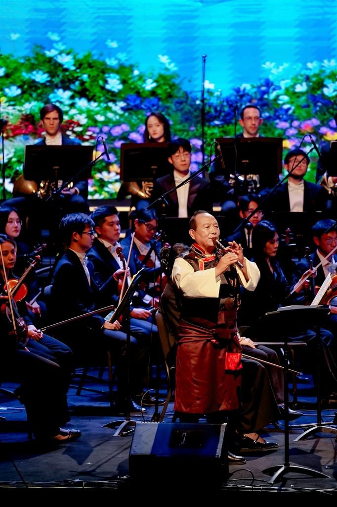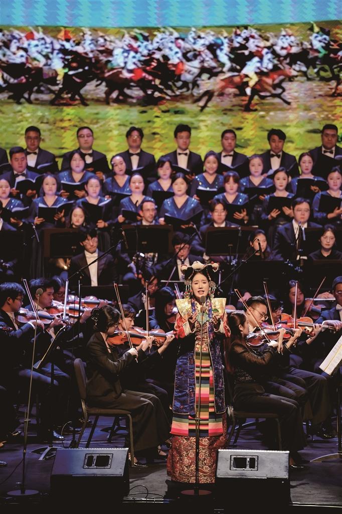 藝術(shù)形式的創(chuàng)新融合是本次音樂會的一大亮點。二重唱《茉莉與格?!穬?yōu)美詮釋了民族文化的交流共生;器樂演奏《“飛弦踏春”與“賽馬”》則讓著名二胡演奏家陳軍的激昂琴聲與扎念琴演奏員措姆的熱情彈奏展開對話,碰撞出令人振奮的藝術(shù)火花。從展現(xiàn)拉薩當(dāng)代生活的電視劇插曲《藍(lán)天上的云》,到描繪鄉(xiāng)村振興新貌的《童話里的格林村》,再到融合原生態(tài)山歌與專業(yè)唱法、曾為中央代表團(tuán)獻(xiàn)唱的《珠穆朗瑪》,一系列新創(chuàng)作品生動展現(xiàn)了傳統(tǒng)與現(xiàn)代交織、充滿活力的社會主義新西藏。