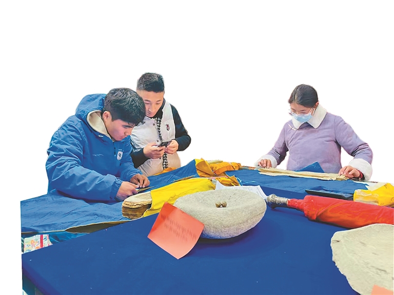 學生在藏醫(yī)展館翻閱藏醫(yī)藥技藝配方。