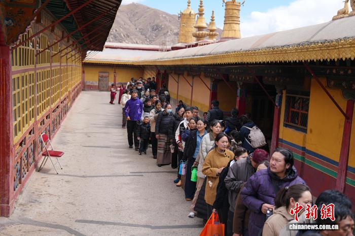 圖為信眾在哲蚌寺內有序排隊朝拜。貢確 攝