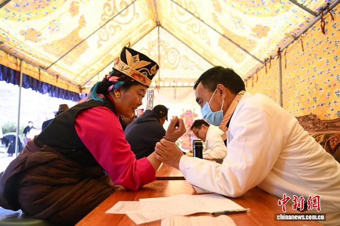 圖為達(dá)普天文觀測(cè)臺(tái)年度觀測(cè)活動(dòng)現(xiàn)場(chǎng),西藏自治區(qū)藏醫(yī)院的專(zhuān)家為村民免費(fèi)義診。貢嘎來(lái)松 攝