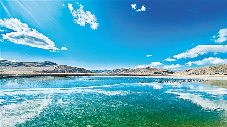 隨著氣溫回升,位于西藏阿里地區(qū)普蘭縣境內的拉昂錯湖面冰層開始消融,形成大小不一的冰塊,呈現(xiàn)出獨特的開湖景觀。