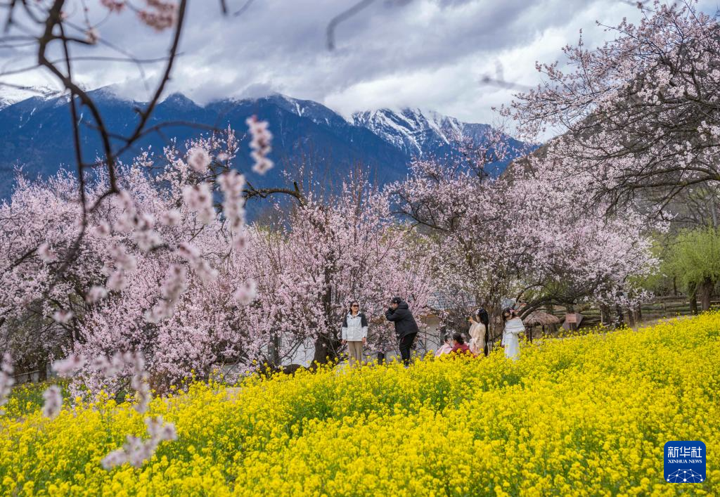 3月31日拍攝的林芝市巴宜區(qū)嘎拉村的桃花與油菜花。