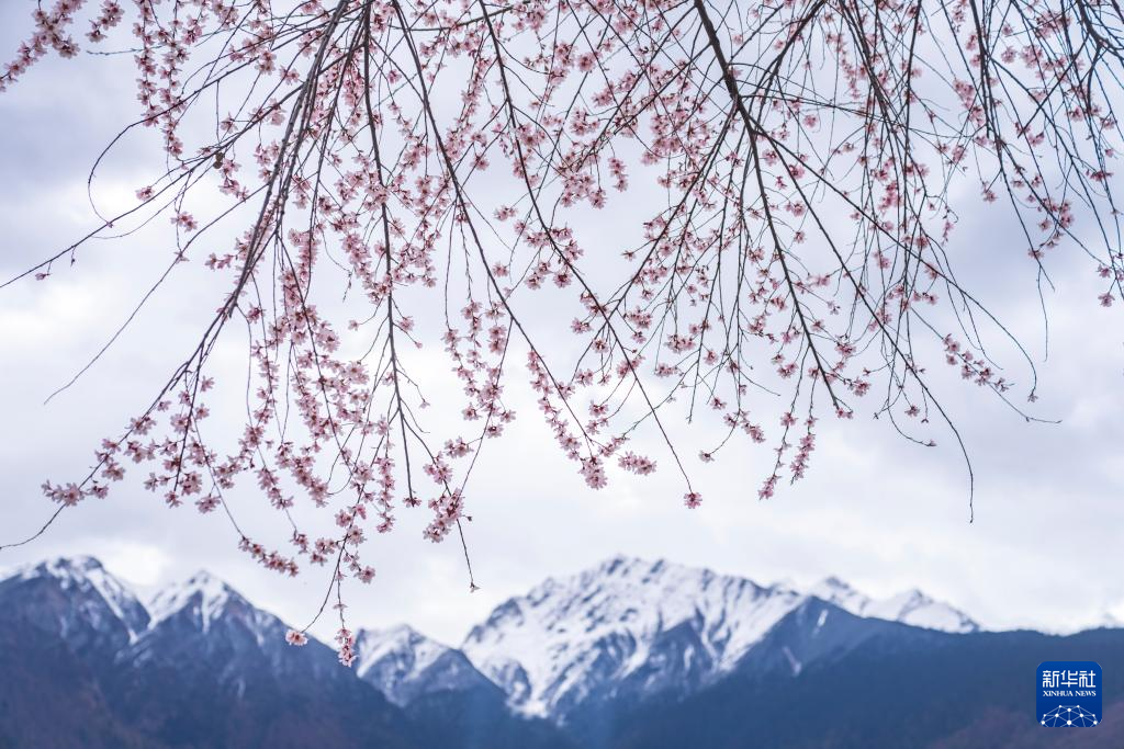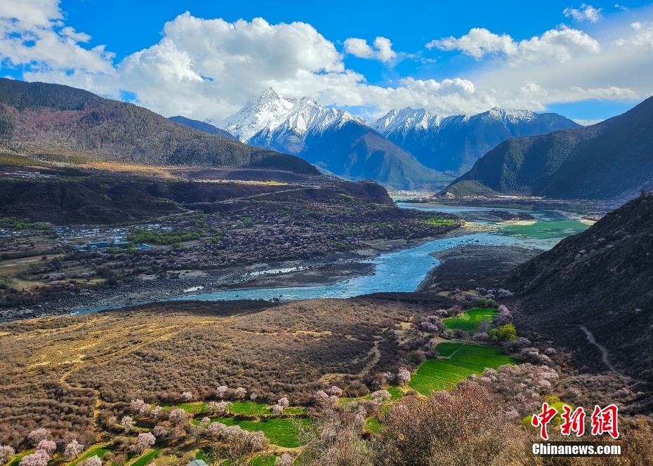 4月1日,西藏林芝市米林市境內的南迦巴瓦峰下,桃花盛開,吸引了眾多游客前來游玩。