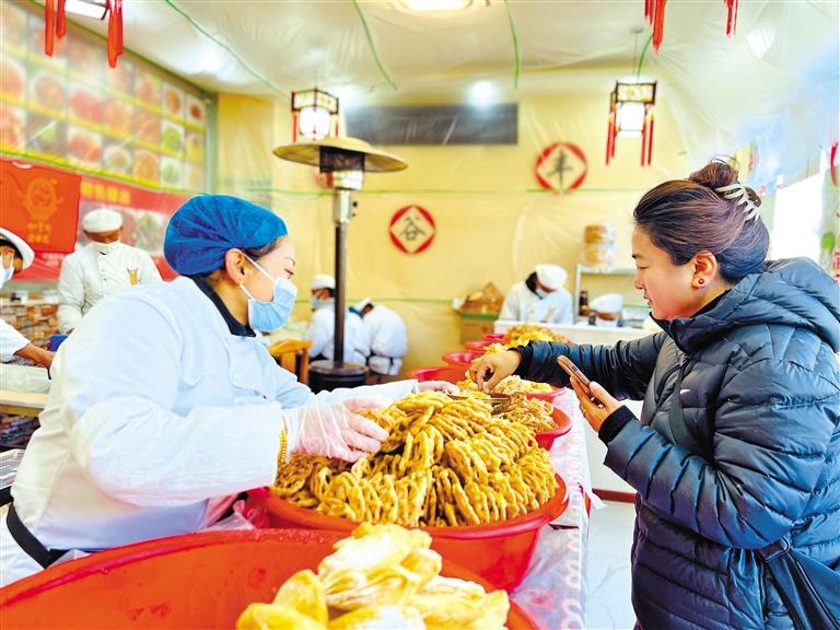 隨著春節(jié)和藏歷新年的臨近,拉薩年貨市場日漸火爆,街頭巷尾飄著陣陣“卡賽”香味?!翱ㄙ悺笔遣貧v新年必備年貨,記者隨機(jī)走進(jìn)一家“卡賽”店,員工們正忙于炸制“卡賽”。市民扎桑說,在家制作“卡賽”費(fèi)時(shí)費(fèi)力,自己每年都會(huì)在市場上購買“卡賽”。