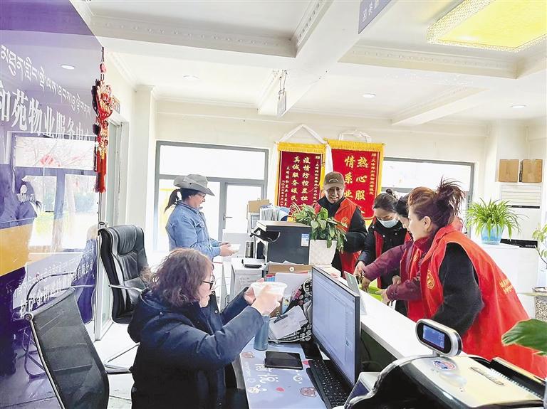 圖為拉薩市城關(guān)區(qū)納金街道林瓊社區(qū)將愛(ài)心湯圓送到堅(jiān)守在一線的工作人員手中。記者 格桑倫珠 攝