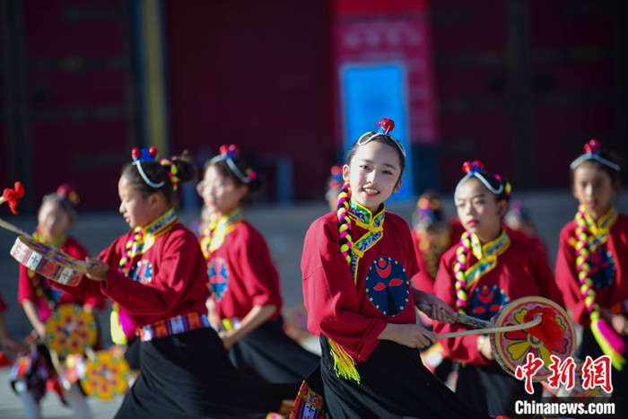 資料圖為西藏自治區(qū)拉薩市城關(guān)區(qū)慈覺林?jǐn)?shù)十名孩子練習(xí)熱巴舞。 中新社記者 貢嘎來松 攝
