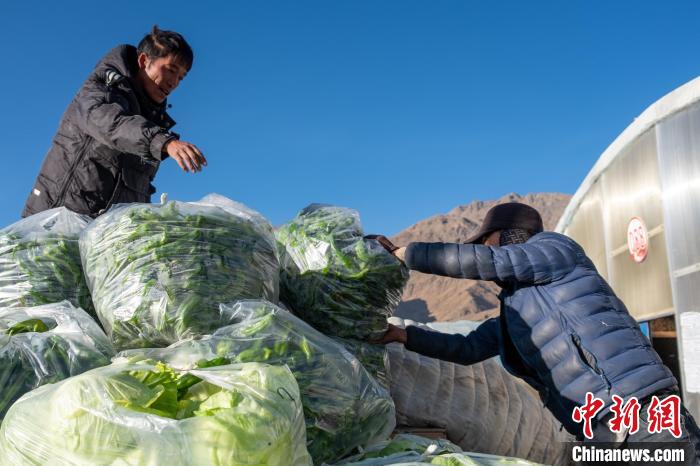 圖為當?shù)剞r(nóng)牧民轉運剛采摘的大棚蔬菜前往日喀則市區(qū)?!〗w波 攝