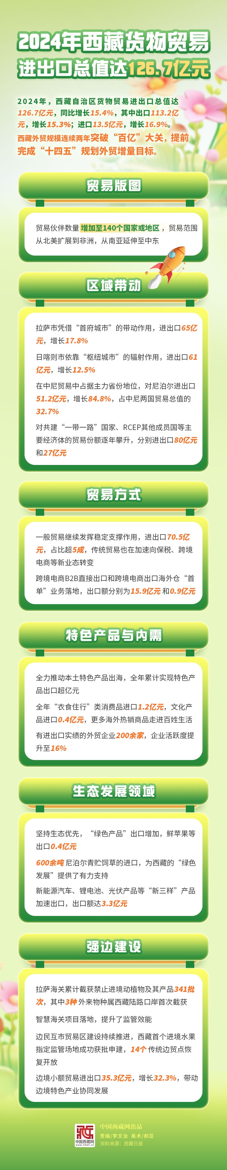 圖解|2024年西藏貨物貿(mào)易進出口總值達126.7億元