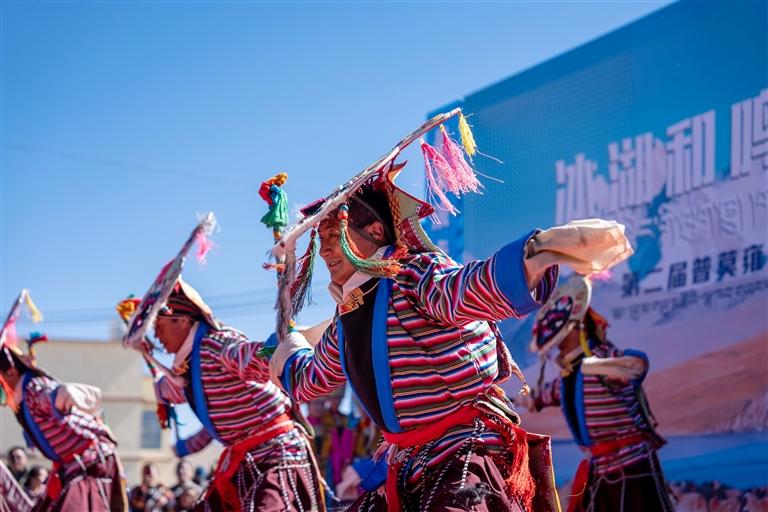 活動(dòng)在浪卡子縣打隆鎮(zhèn)推瓦村舉辦。普莫雍錯(cuò)冬季封凍后,會(huì)形成如夢(mèng)如幻的幽藍(lán)冰面,因此被贊譽(yù)為“中國(guó)貝加爾湖”。每年2月前后,當(dāng)湖面完全冰封,推瓦村村民便會(huì)集結(jié)羊群,趕著它們踏上冰面,前往湖心島過(guò)冬,這一延續(xù)千年的冰上趕羊傳統(tǒng),承載著深厚的歷史文化底蘊(yùn)。