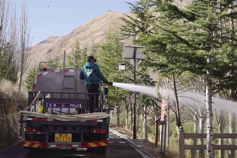 在南山公園,記者看到工人們正忙著給樹澆水。南山公園安保人員扎西次旺告訴記者:“雖然我是負責(zé)安保工作的,但是我不忙的時候也會去給樹澆水,因為這里的每一棵樹、每一株草對于我們而言都有非常大的意義。通過大家的努力,我相信我的家鄉(xiāng)會變得越來越綠,生態(tài)環(huán)境也會越來越好?!?/p>