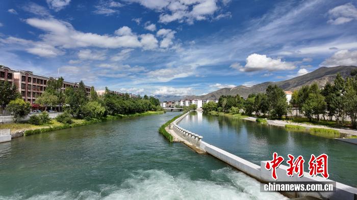 圖為改造后的拉薩河兩島內(nèi)河綠色生態(tài)廊道。 中新網(wǎng)記者 張東方 攝