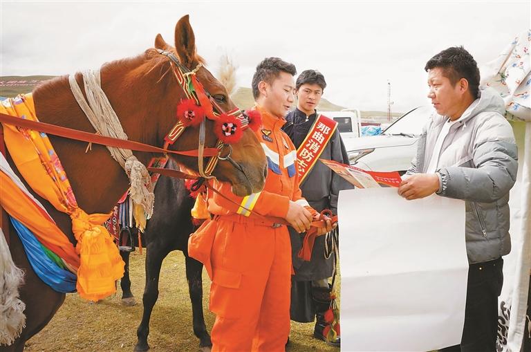 在那曲市廣闊的賽馬場上,一支特殊的“馬背上的消防宣傳服務隊”近日成為亮麗風景。為保障2025年那曲市恰青賽馬節(jié)期間消防安全,那曲市消防救援支隊創(chuàng)新工作方法,聯(lián)合那曲市馬術協(xié)會工作人員與消防志愿者,騎馬深入牧民帳篷營地及賽事區(qū)域,將消防安全知識送至每一位群眾身邊。