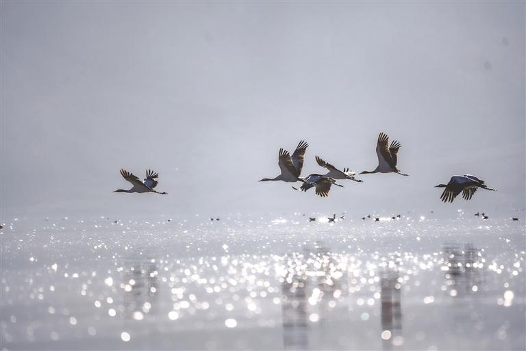 近日,被譽(yù)為 “高原仙子”的國家一級保護(hù)動(dòng)物黑頸鶴如期飛抵拉薩市林周縣卡孜水庫越冬,與斑頭雁、赤麻鴨等水鳥共同構(gòu)成高原濕地生態(tài)畫卷。