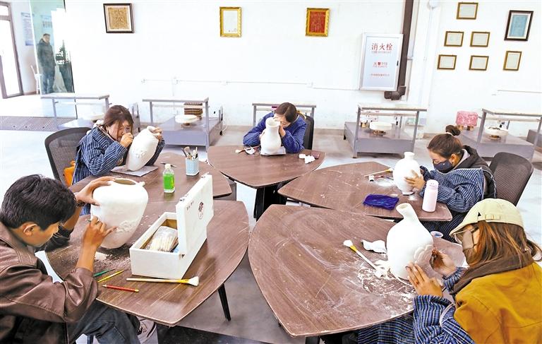 圖為該公司員工在創(chuàng)作陶瓷作品。記者 旦增蘭澤 攝
