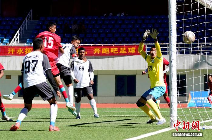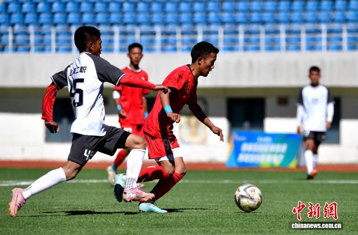 10月21日,2025年第四屆中國青少年足球聯(lián)賽西藏賽區(qū)男子U17(校園高中)組山南代表隊(duì)(白色球衣)與昌都代表隊(duì)(紅色球衣)比賽中。2025年第四屆中國青少年足球聯(lián)賽西藏賽區(qū)男子U13、U17(校園初、高中)組比賽將持續(xù)至10月22日,共有14支代表隊(duì)、300余名運(yùn)動員參賽。各支代表隊(duì)以單循環(huán)賽制展開多輪激烈角逐。中新社記者 李林 攝