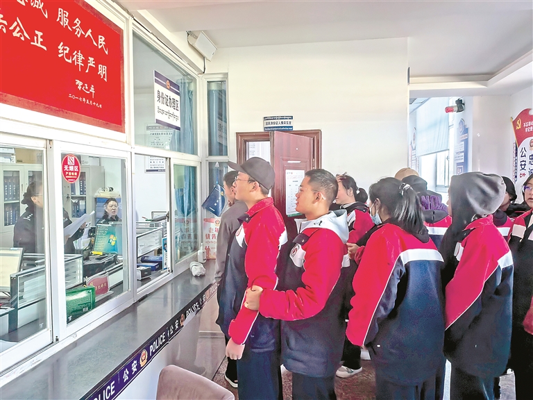 圖為蔡公堂派出所為學(xué)生開辟綠色通道集中辦理身份證。記者 劉斯宇 通訊員 陳海兵 攝